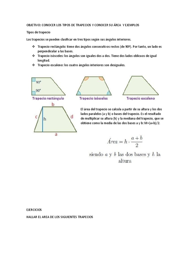 Hay 3 clases de trapecios. El trapecio tiene un área de 425 cm 2. Áreas perímetros y volúmenes de figuras geométricas.